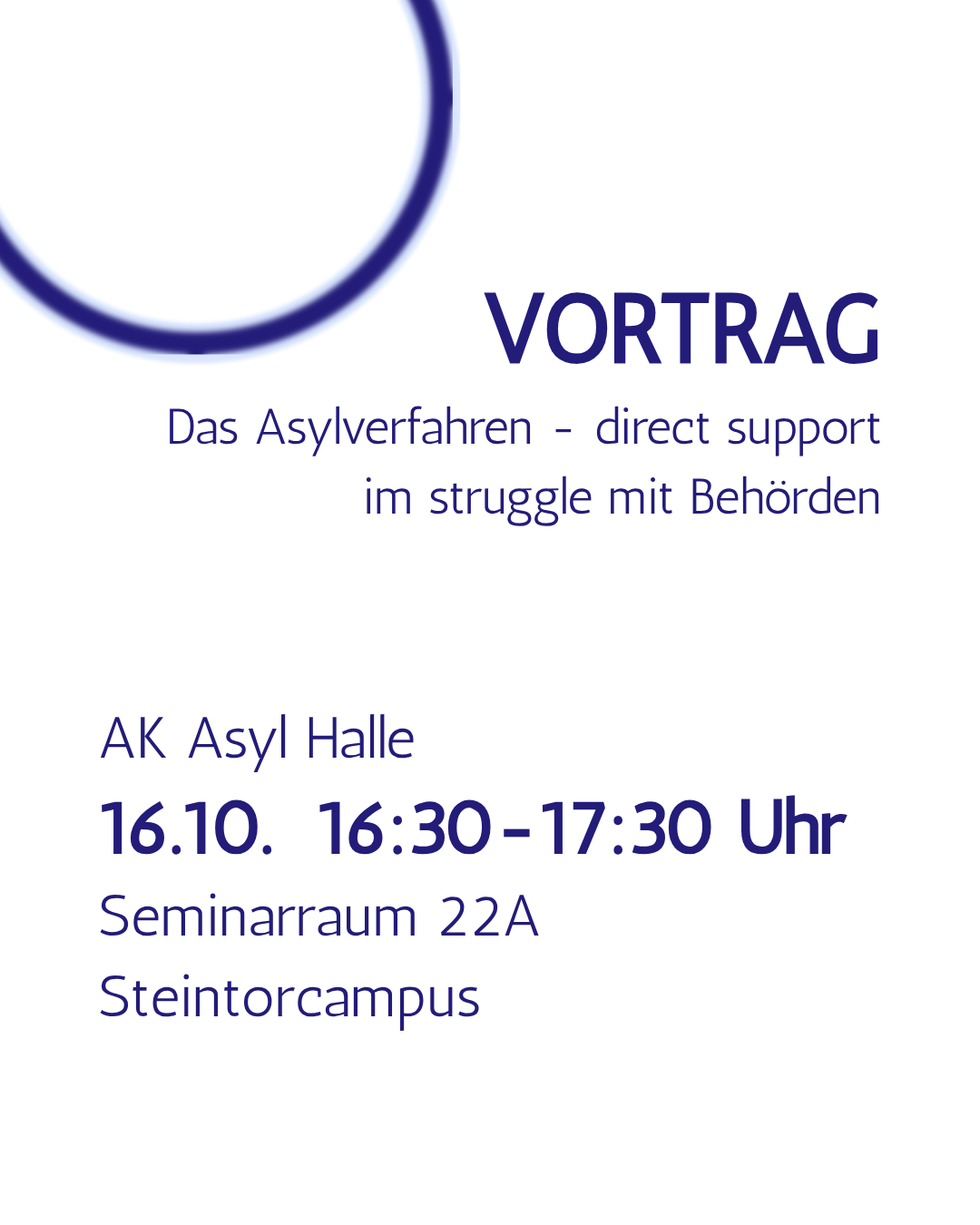 ![]() Vortrag mit Infos zum Ablauf des Asylverfahrens/ struggel darin + kleiner Input/Workshop, wie man ehrenamtlich supporten kann
