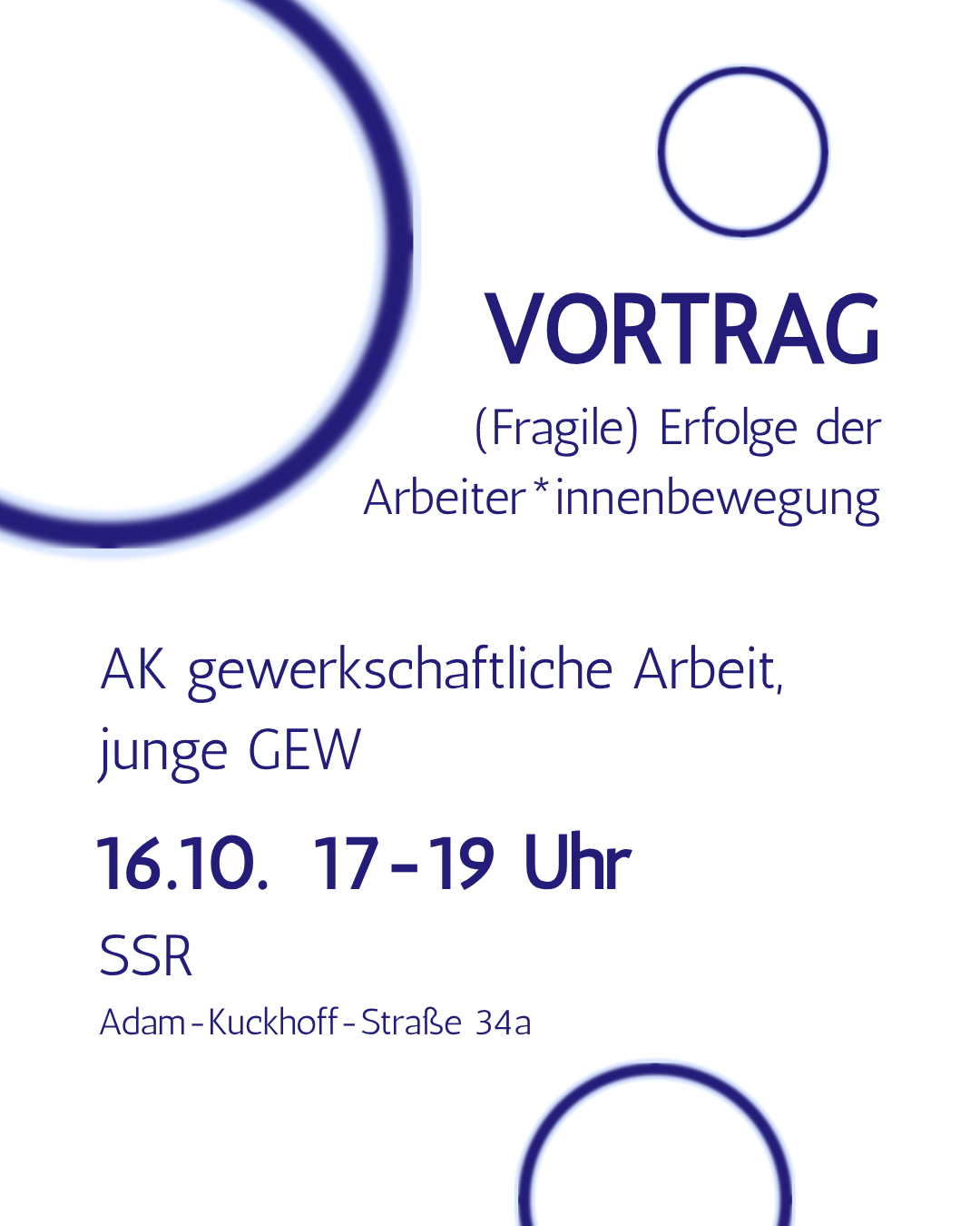 Streik, Gewerkschaften, Tarifvertrag! Was hat es mit mir und meinem Studium zu tun? Welche Möglichkeiten gibt es für mich, gewerkschaftlich aktiv zu werden? Und wie können wir in Gewerkschaften gegen den Rechtsruck aktiv werden? Kritisch-solidarisch diskutieren wir über gewerkschaftliche Tarifkämpfe, Bildungsarbeit an der Uni und Berufsschulen und die Streikbewegung TVStud - die bundesweit und hier … Gewerkschaften Bilden! weiterlesen |